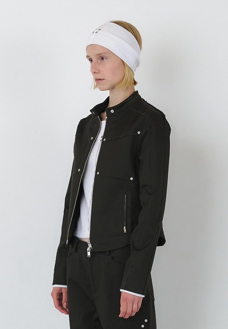 STUD COTTON BIKER JACKET (DARK KHAKI)